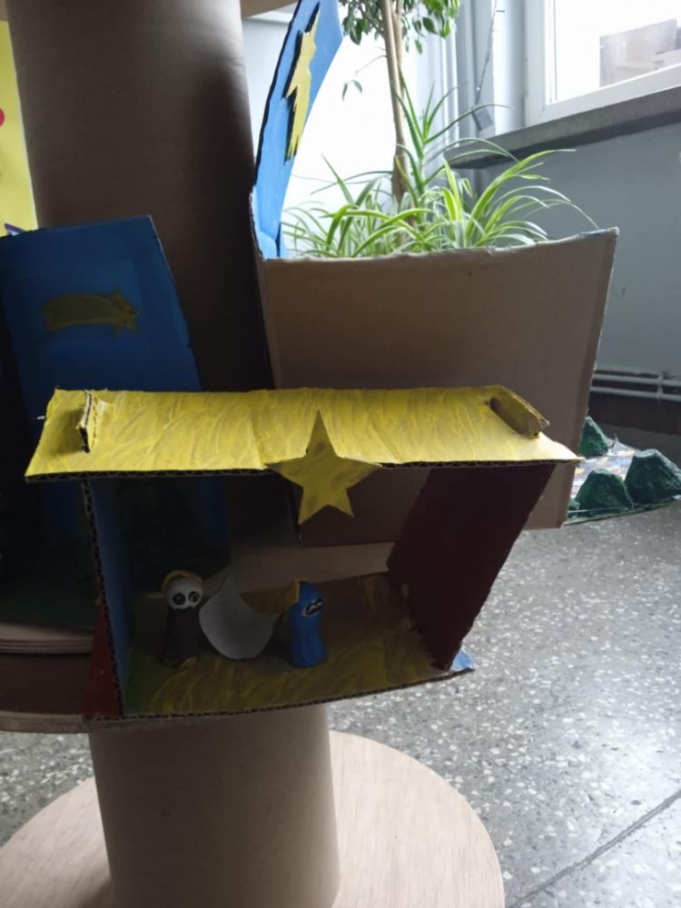 Konkurs pod hasłem "Miniaturowa Szopka" rozstrzygnięty! Tradycyjnie prace zostały wykonane z szarego kartonu. W tym roku pewną innowacją było wprowadzenie koloru nadającego blasku i wydobywającego głębię.