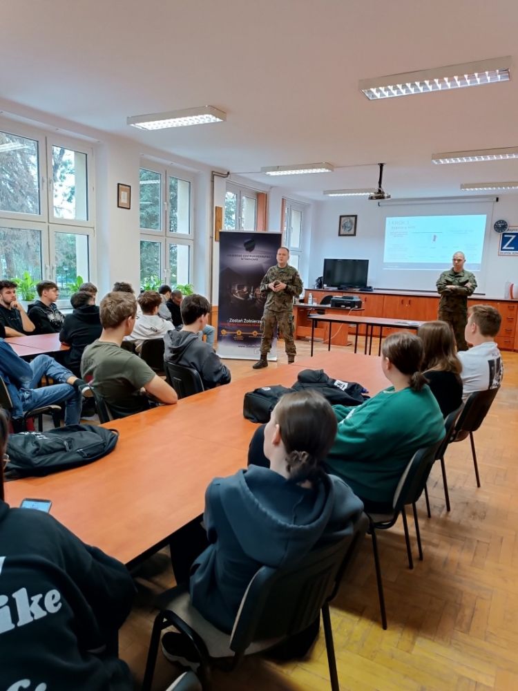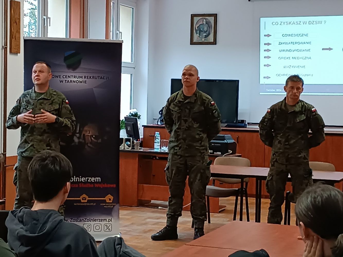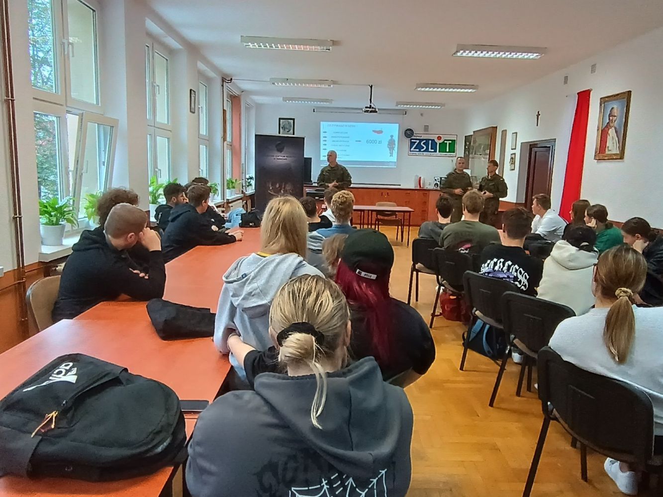 Uczniowie klas 4 LO, 5TGI, 5TLŻ uczestniczyli w prelekcji prowadzonej przez pracowników Wojskowego Centrum Rekrutacji.