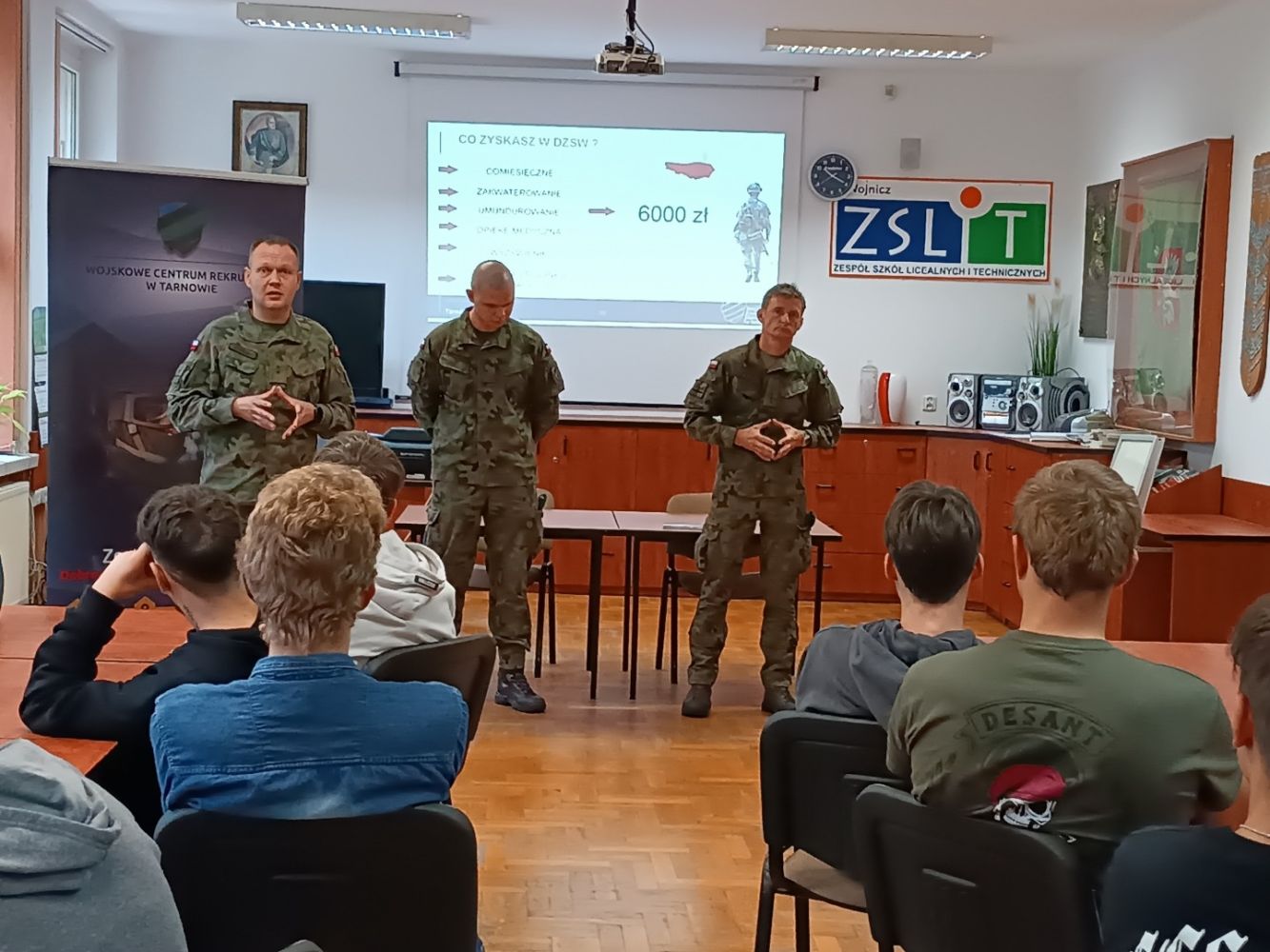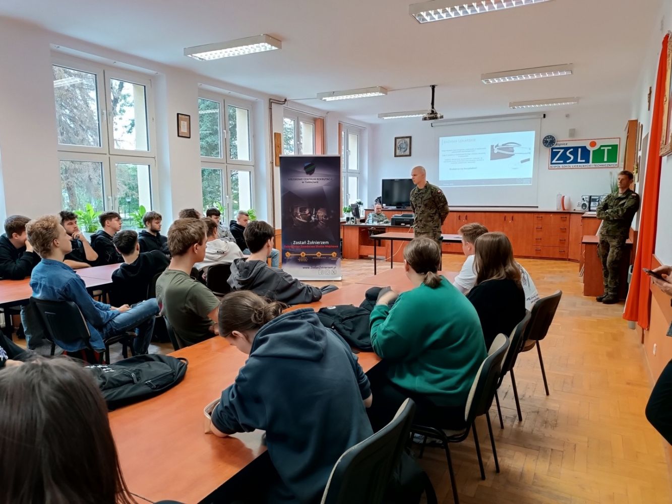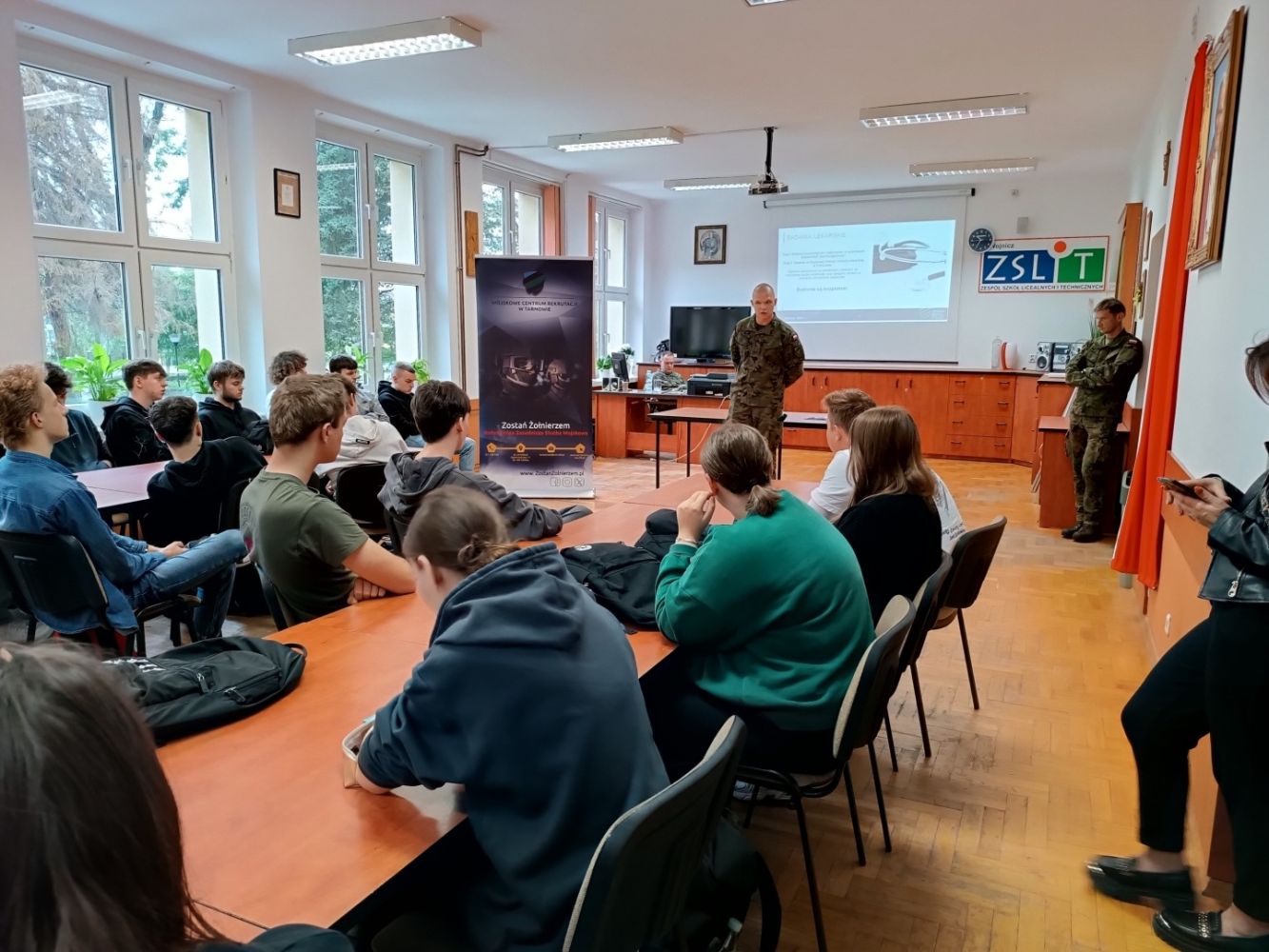 Uczniowie klas 4 LO, 5TGI, 5TLŻ uczestniczyli w prelekcji prowadzonej przez pracowników Wojskowego Centrum Rekrutacji.