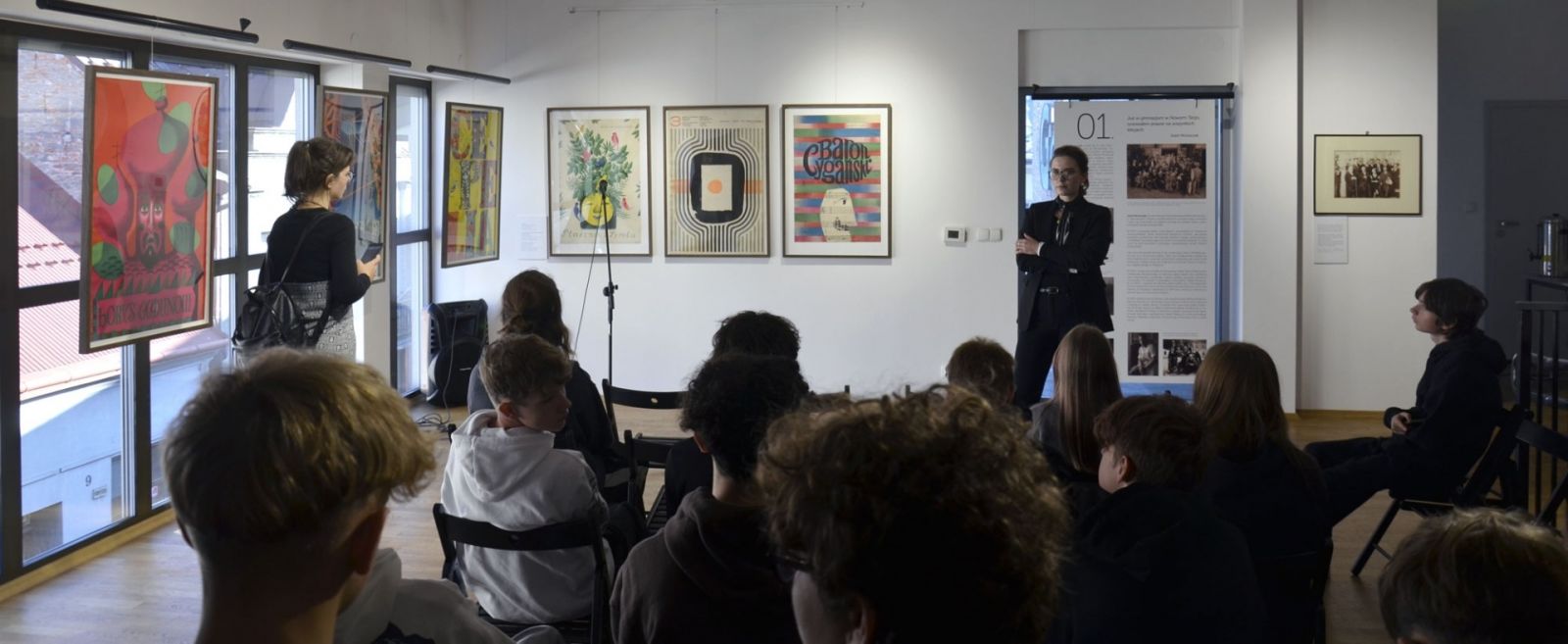 Uczniowie zwiedzili wystawę czasową pod tytułem: "Prof. Józef Mroszczak. Życie i twórczość w trzech rozdziałach" jednego z najwybitniejszych polskich grafików i najważniejszych, obok Henryka Tomaszewskiego i Tadeusza Trepkowskiego, twórców polskiego plakatu.