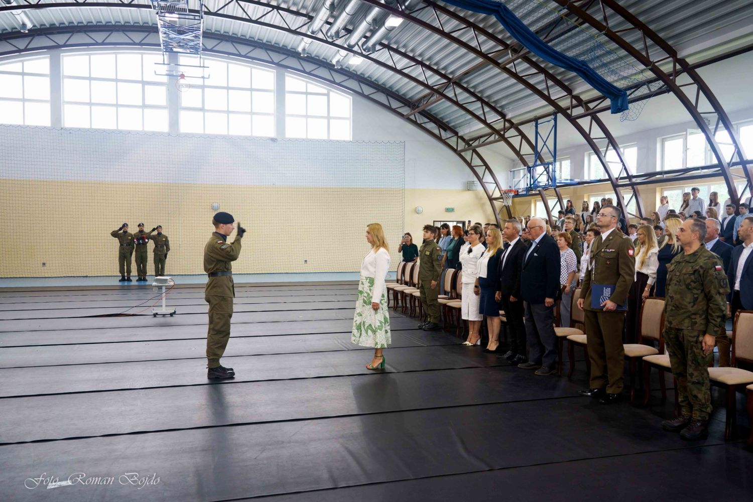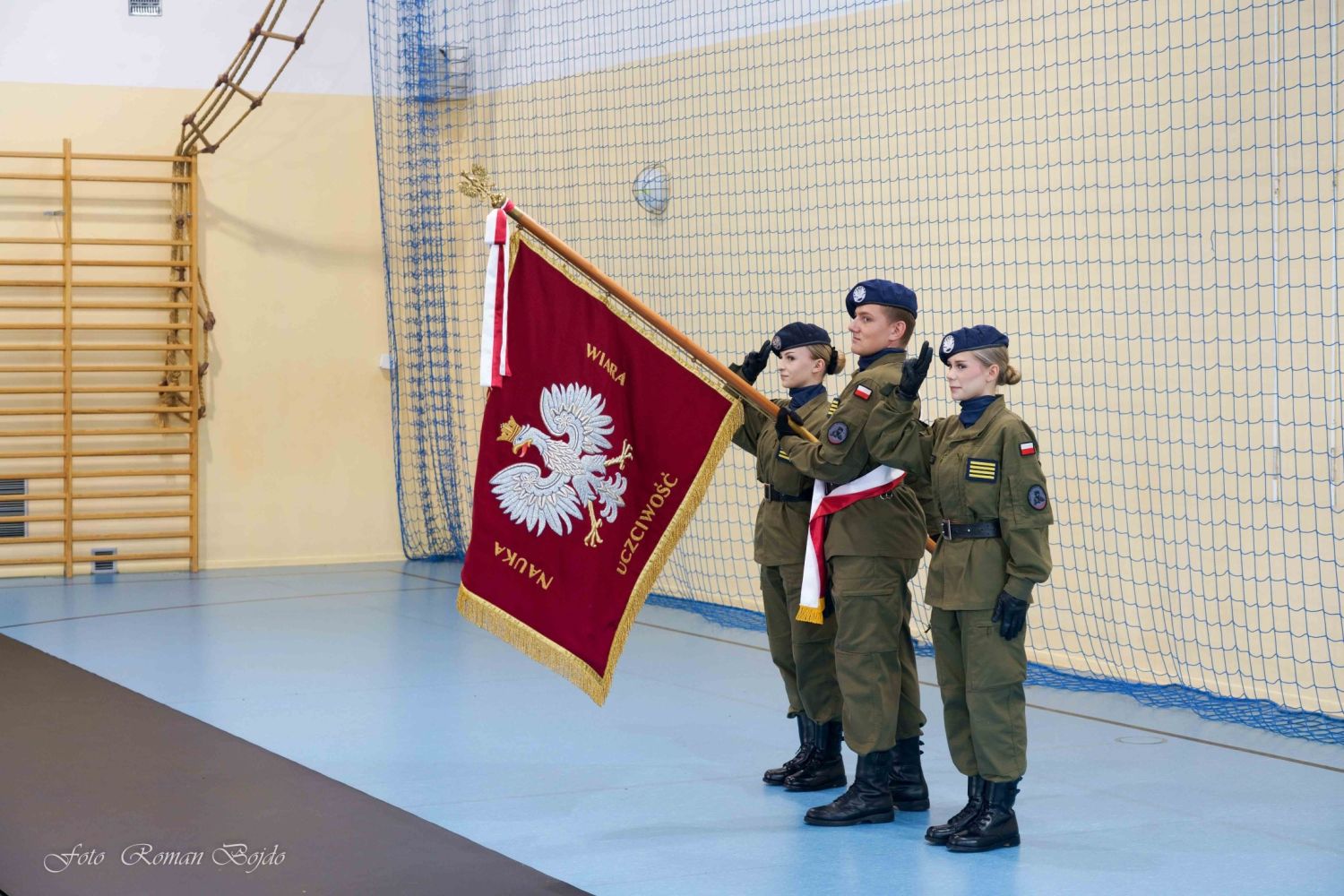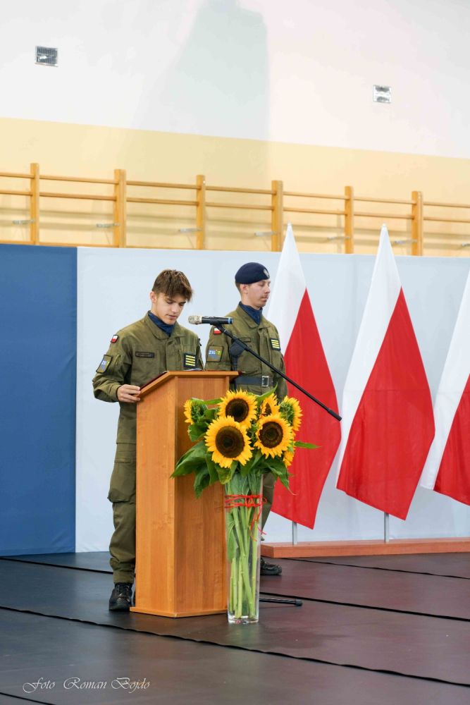 Uczniowie klas mundurowych przychodzą w mundurach, pozostali uczniowie w stroju galowym.