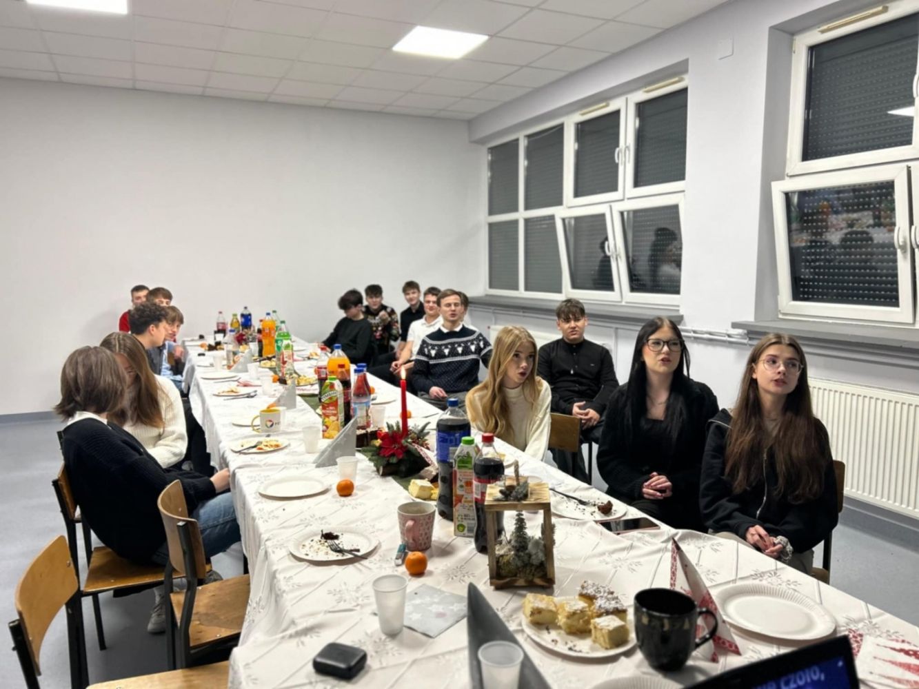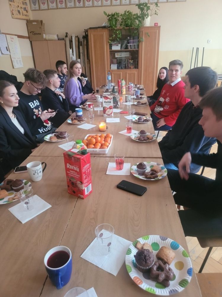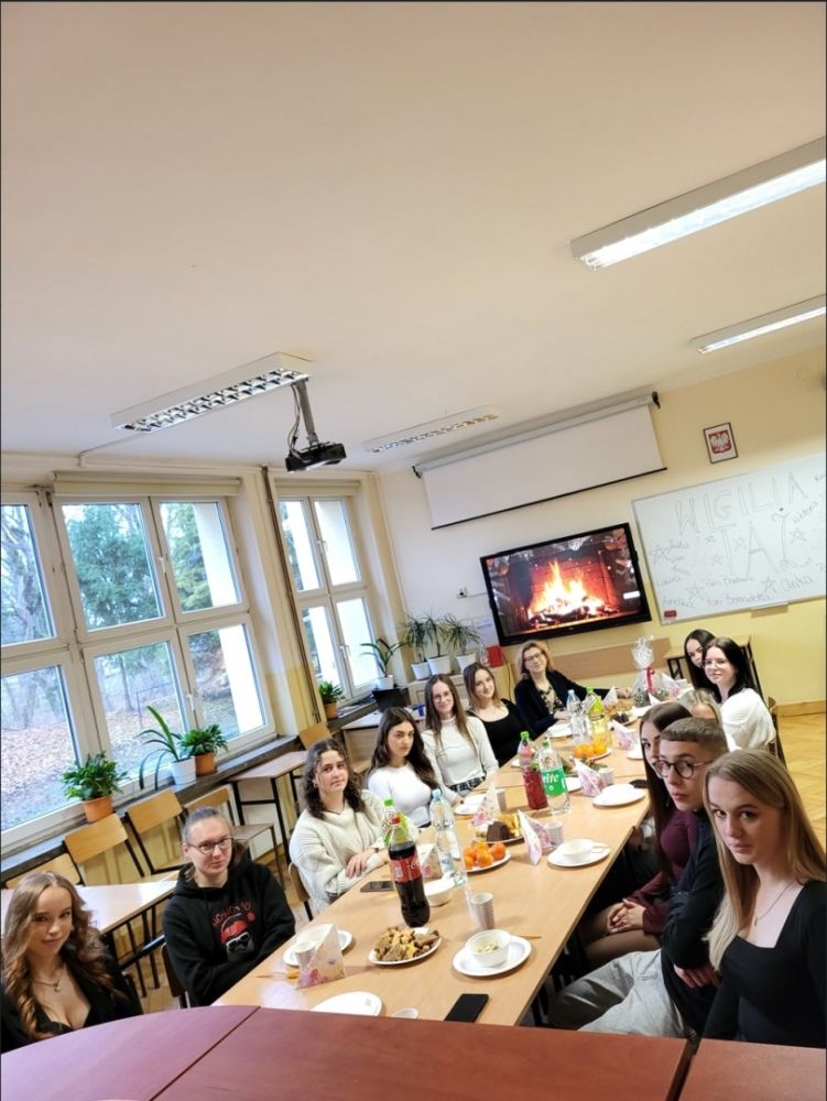 Uczniowie przygotowali klasowe wigilie i spotkali się z nauczycielami, aby wspólnie kolędować i podzielić się opłatkiem.