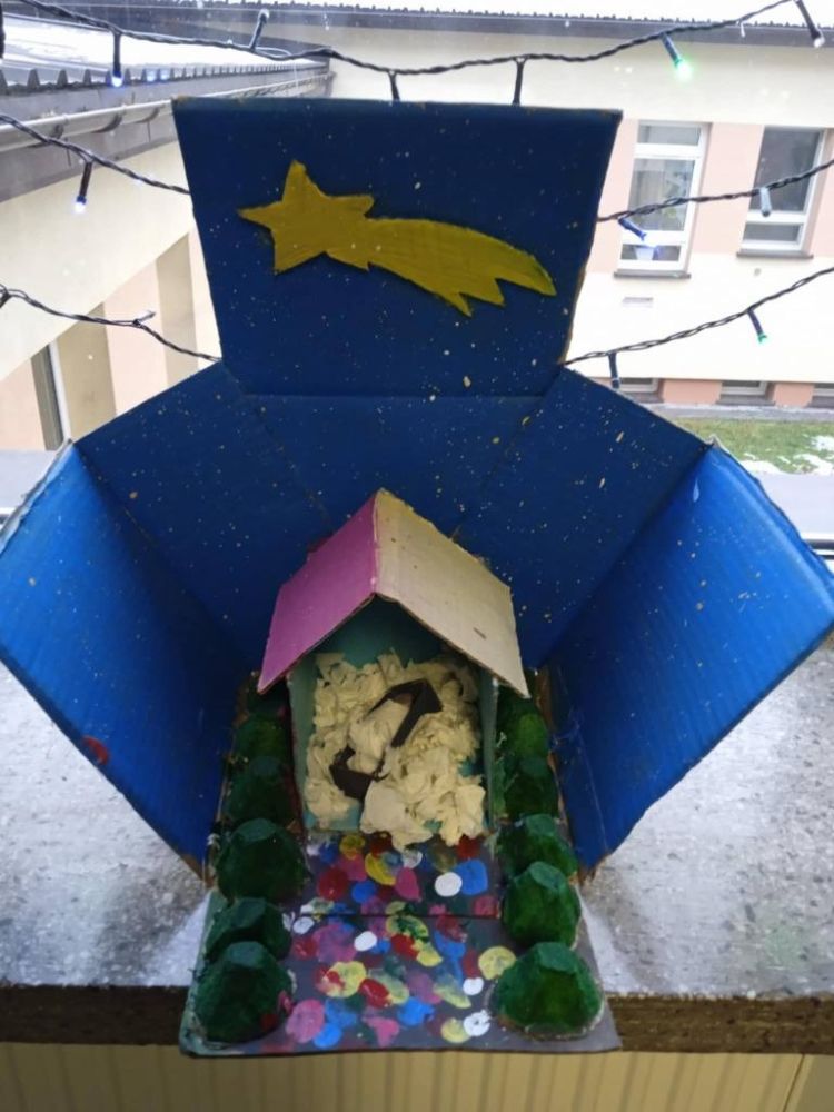 Konkurs pod hasłem "Miniaturowa Szopka" rozstrzygnięty! Tradycyjnie prace zostały wykonane z szarego kartonu. W tym roku pewną innowacją było wprowadzenie koloru nadającego blasku i wydobywającego głębię.