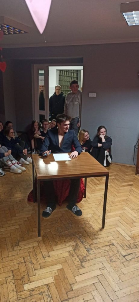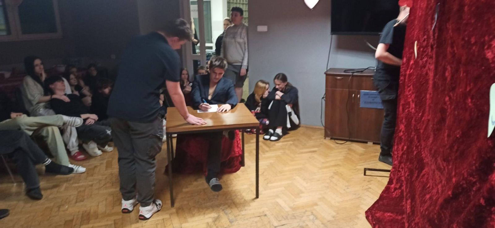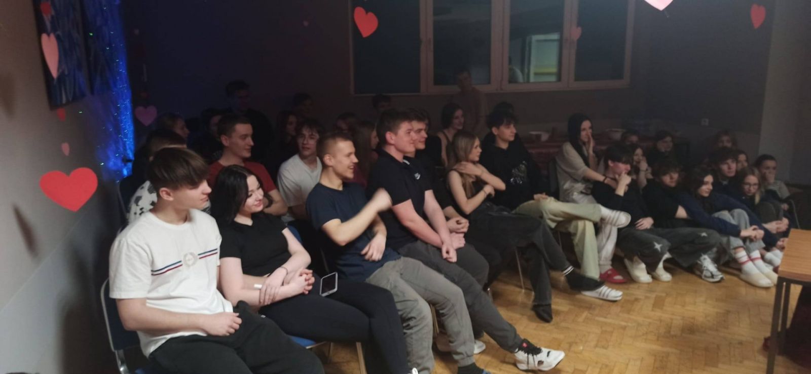 Walentynkowy wieczór w naszym internacie był pełen emocji i… "romantycznych" niespodzianek! Poczta Walentynkowa sprawiła, że wiele osób otrzymało urocze wiadomości i słodkie upominki. Niektóre kartki wywołały rumieńce, inne – salwy śmiechu! Randka w ciemno – tu dopiero działo się coś niezwykłego! Nikt nie spodziewał się TAKIEGO finału… a jednak! Los połączył parę, która całkowicie zaskoczyła wszystkich! Czy to początek pięknej historii? Czas pokaże... Dyskoteka walentynkowa rozkręciła imprezę na dobre! Tańce, dobra muzyka i świetna atmosfera sprawiły, że ten wieczór zapamiętamy na długo.
