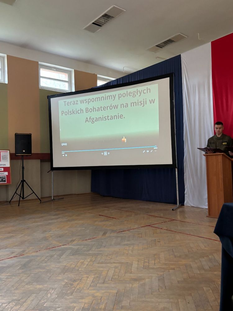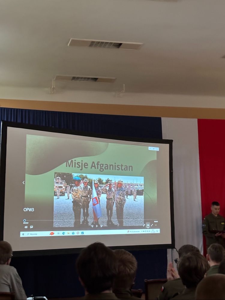 12 grudnia uczniowie klas I, II, III OPW przedstawili w formie prezentacji wyniki swojej pracy , zdobyte wiadomości o służbie polskich żołnierzy w czasie misji pokojowych. Klasa I OPW przygotowała prezentację o misji pokojowej w Kosowie, klasa II OPW – film – o misji w Iraku a klasa III OPW – film o misji w Afganistanie. Prace uczniów koordynowali Pani Renata Burdak i Pan Sierżant Zbigniew Okulicki