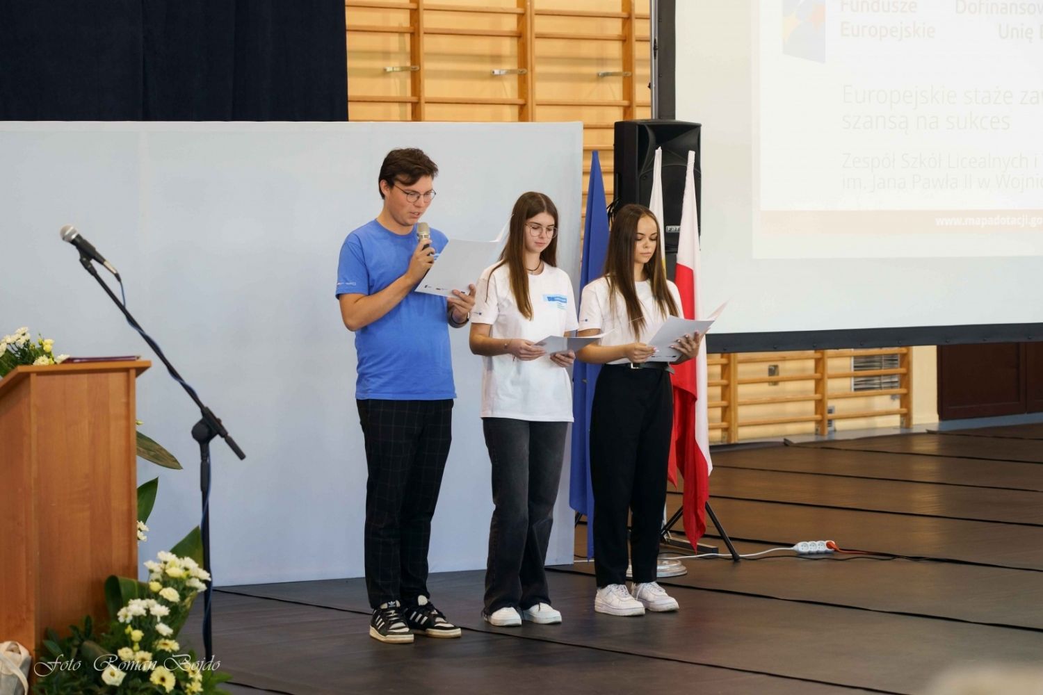 Kolejnym punktem uroczystości było rozdanie certyfikatów i prezentacja na zakończenie staży zagranicznych, które były organizowane w ramach projektu „Zagraniczna mobilność edukacyjna uczniów i absolwentów oraz kadry kształcenia zawodowego”. Certyfikaty wręczyły Pani Dyrektor Agnieszka Kapek, koordynator Pani Ewa Żybura oraz Pani Lidia Jarońska.
