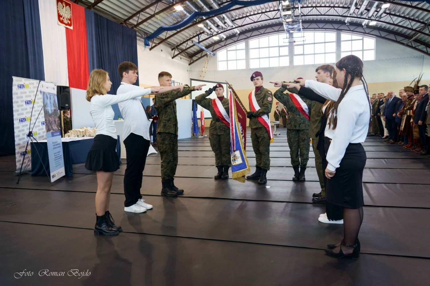 Podczas tej uroczystości zostało również przekazane dowództwo w klasach mundurowych, a uczniowie kl. III OPW przejęli opiekę nad sztandarem od swoich starszych kolegów. Tego dnia przybyło wielu znamienitych gości, swoją obecnością zaszczycili nas rodzice uczniów, a także absolwenci naszej szkoły.