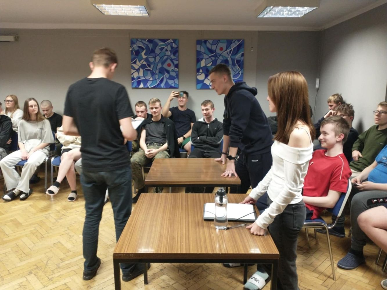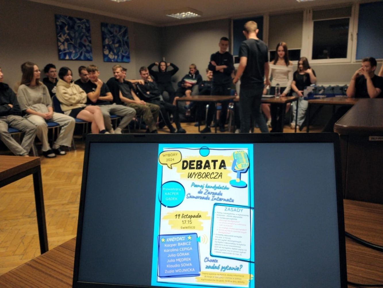 Mamy nowy skład Zarządu Samorządu Internatu!Głosowanie w wyborach uzupełniających poprzedziła gorąca debata, brawurowo poprowadzona przez Kacpra, podczas której kandydaci mieli okazję zaprezentować swoje pomysły na nowy rok szkolny. Odnotowaliśmy sukces frekwencyjny, a najwyższe poparcie zyskali Kacper Babicz i Klaudia Sowa. Serdecznie gratulujemy