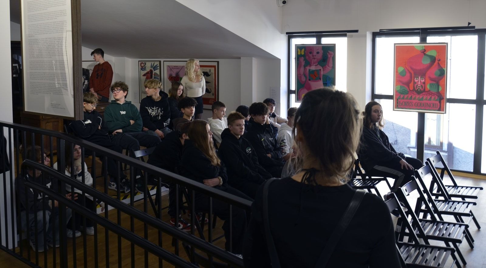 Uczniowie zwiedzili wystawę czasową pod tytułem: "Prof. Józef Mroszczak. Życie i twórczość w trzech rozdziałach" jednego z najwybitniejszych polskich grafików i najważniejszych, obok Henryka Tomaszewskiego i Tadeusza Trepkowskiego, twórców polskiego plakatu.
